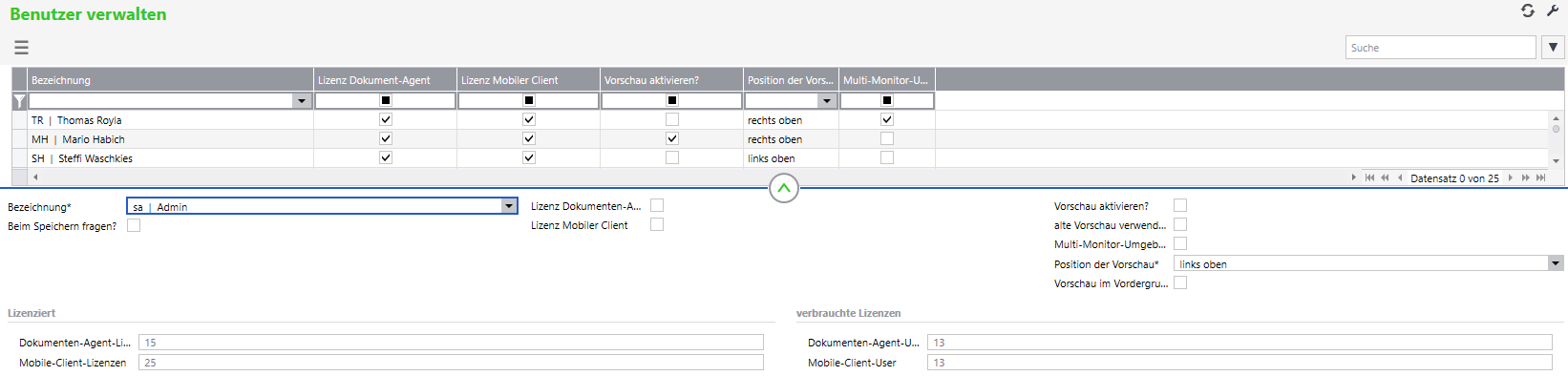 In der Benutzerverwaltung werden die Benutzer eingetragen, die am Freigabeprozess teilnehmen sollen.